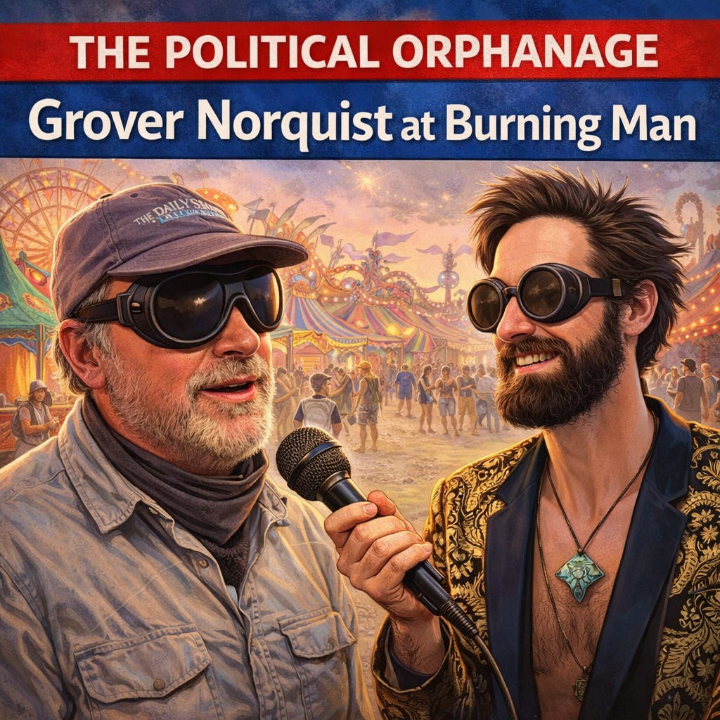 Burning Man is a giant, 80,000-person party in the desert, complete with a crazy amount of neon, bicycles, and narcotics. Grover Norquist is a powerful Republican, alternately famous or infamous for compelling GOP leaders to pledge never to increase spending, who attends Burning Man every year. He joins the podcast to talk about Burning Man, influential secret societies, his foray into standup comedy, and of course, taxes.